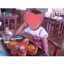トンボを型どった木の器に入ったお子様ランチの「こんちゅうランチ」は子どもが喜んでいました。