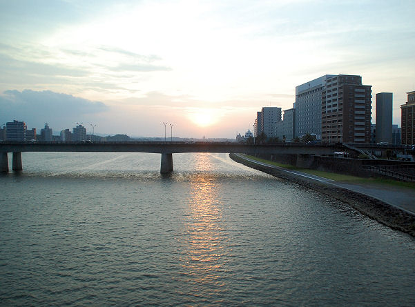 鹿児島県に端を発し、宮崎市街地を分断するように流れ、日向灘に注ぐ大淀川。