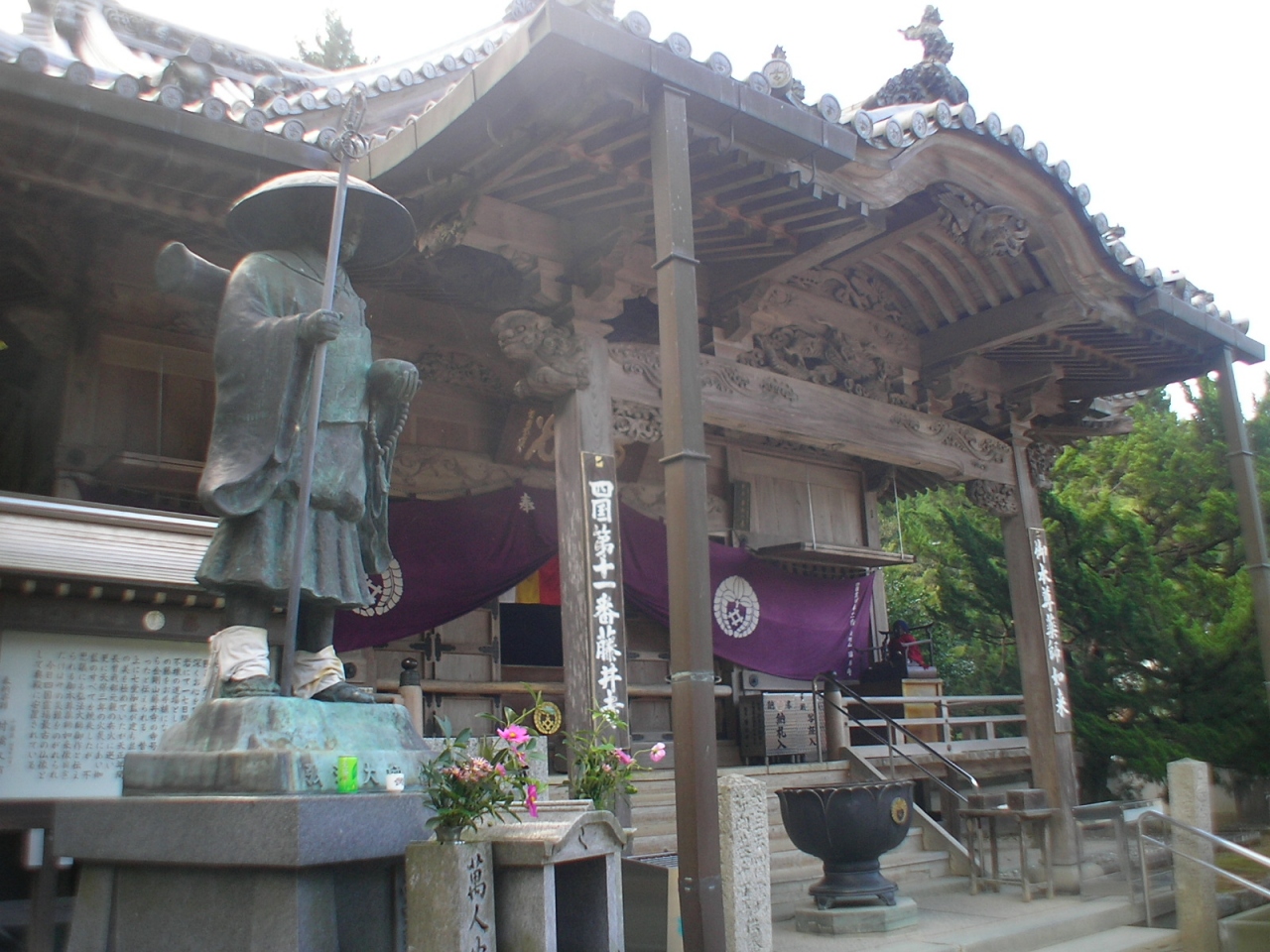 四国八十八ヶ所霊場の第11番札所です。三方を山に囲まれた静かな佇まいのお寺さんです。本尊は薬師如来で、弘法大師自らの作であると伝えられており、不思議にも2度の火災の難を逃れていることから「厄よけのお薬師さん」と呼ばれています。 藤井寺から次の十二番・焼山寺までは、往古の姿を留める「へんろ道」が通じており、弘法大師が修行中に休息したという遺跡や石仏、標石が残される貴重なへんろ道です。細く嶮しい山道で約13キロもある難所であることから“遍路ころがし”といわれています。