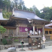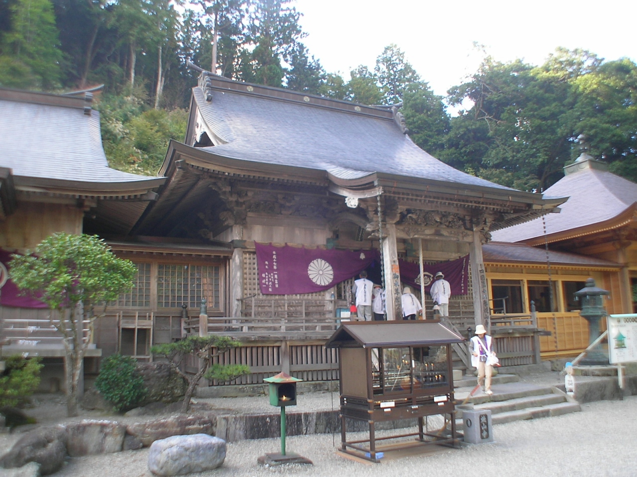 四国八十八ヶ所霊場の第12番札所です。焼山寺山(標高938メートル)の8合目近くにあり、四国霊場で2番目に高い山岳札所。剣山や白髪山など四国山脈の山々がひろがる眺望はすばらしい。四国霊場には「遍路ころがし」といわれた札所がいくつかあるが、焼山寺もその一つで、昔から嶮しい坂道の難所を辿る「修行の霊場」でした。いまは山上まで車道が通っています。境内は樹齢数百年の杉の巨木(県の天然記念物)が並ぶ、凛とした空気が漂うお寺さんでした。本堂左横のお堂に、中央が大黒天、右面が毘沙門天、そして左面が弁財天の像の三面大黒天が安置されています。