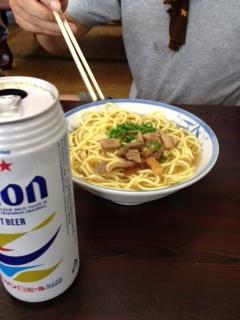 八重山そば400円、チャーハンスープ付500円、親子丼スープ付500円、と、瓶ビール頼んだら、缶しかないと言われたのですが、500mlが出てきました。