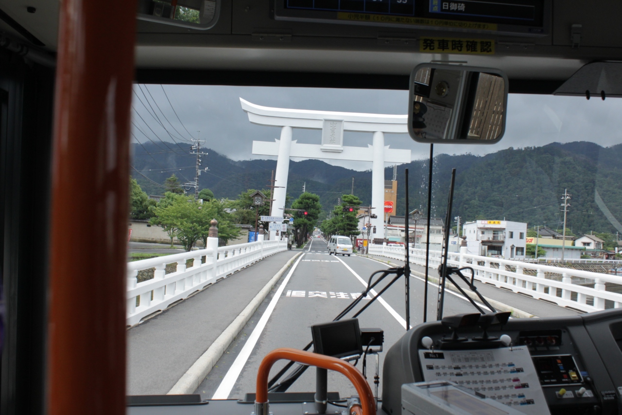 出雲市から出雲大社ゆきのバスに乗れば、大鳥居をくぐります。