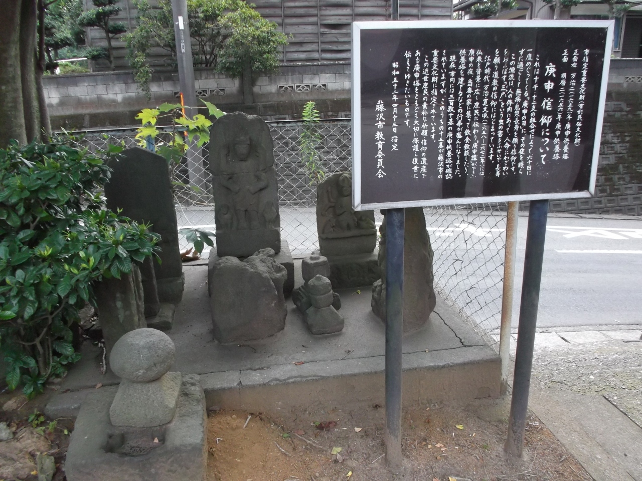 ココ、境内には県や市の有形民俗文化財の石造物、庚申塔・石像が集められ安置されています。本殿側には力石が置かれていました。