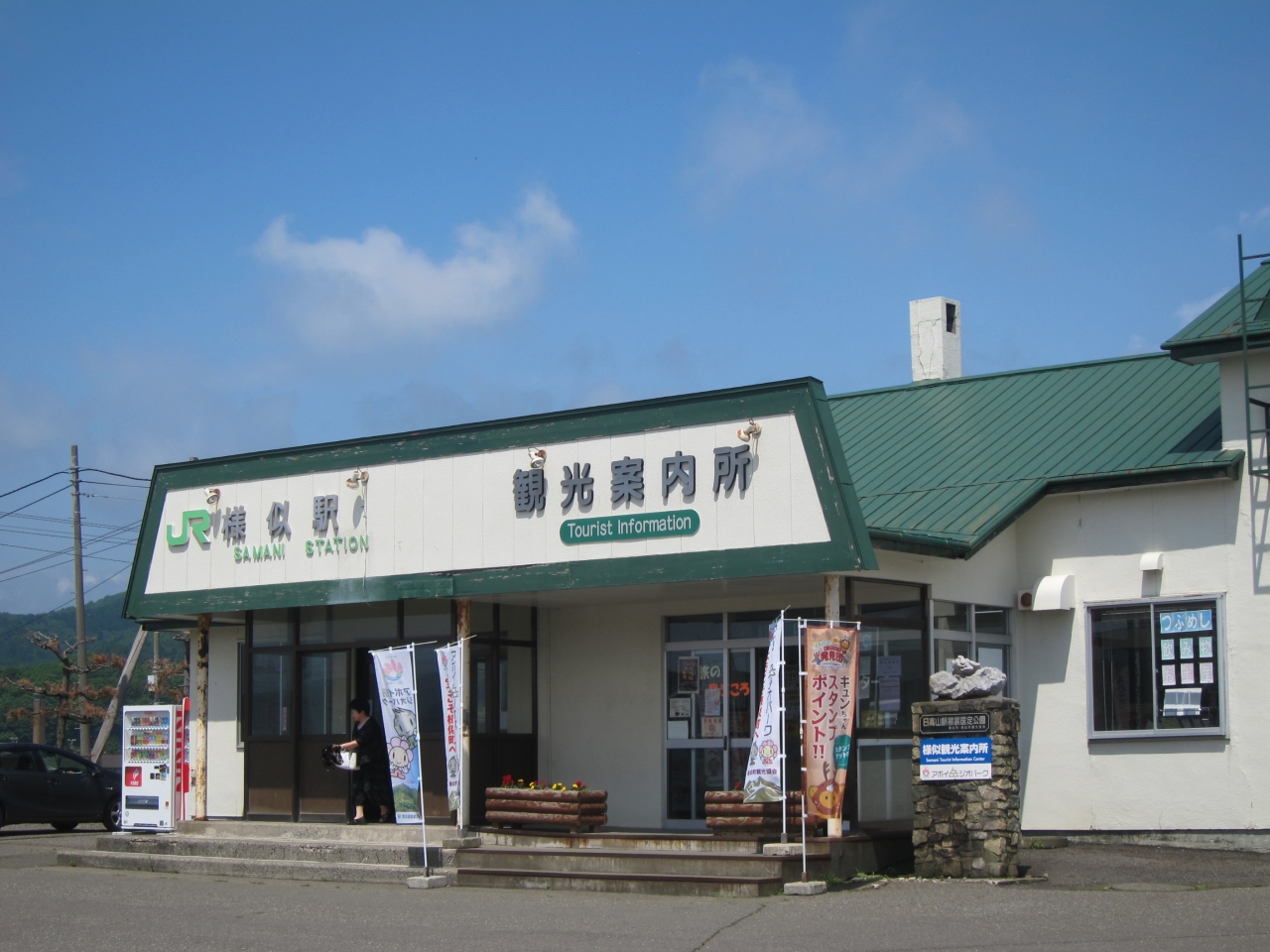 JR様似駅の構内にあり、観光案内のほか、様似のお土産の販売やレンタサイクルまであります。日高、えりも、そしてアポイ岳の各種パンフレットが備えられ、情報収集に便利です。夏季は8時30分から17時まで開いているということで、襟裳岬へ行く途中、駅でのバス乗り継ぎの待ち時間などを利用して、事前の情報収集に活用できます。レンタサイクルがあるようなので、襟裳岬の次は、アポイ岳や様似町の散策もよいかなという気分になりました。様似町独自のちょっと変わったお土産なども販売しているので、岬でのお土産が足りない場合の補足にも活用できます。帰りの場合、あとは列車に乗るだけなので多少、荷物が増えても問題ありません。