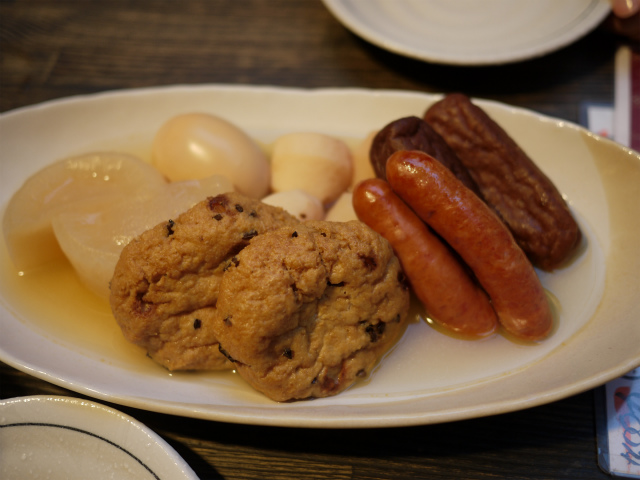 黄熊で風邪をひきそうなほど寒くなったので、屋台村でおでん屋を探し、入ったのは《薩摩黒おでん・おてちき》さん。あっさり出汁のおでんで、温まりました~。特製の黒味噌ダレはこっくり甘くて大根によく合いました。お店のお兄さんがかっこよかったです。お店の中はお客さんでいっぱいでした。まぁ、寒かったので外の席で良かったです。他にもピザ屋さんや、スパニッシュバル的なお店に心惹かれました。余力があればハシゴしたかった、賑やかで雰囲気の良い屋台村でした。
