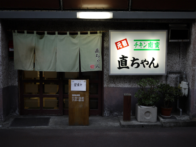 高千穂に行くために延岡で前泊。宮崎といえば、肉巻きおにぎりかチキン南蛮でしょ、ということで前者はコンビニ頼みにして、チキン南蛮発症の店の一つと言われる《直ちゃん》へ。お店の名前も佇まいも味がありますね。平日の19時前でしたが、何人か待ち人がいました。10分ほどで案内されてカウンター席へ。どの人が直ちゃんだろうか。チキン南蛮を注文し、夕方のニュースを見ながらしばし待つ。お店のおじさんが、何やらすごい箸さばきで、鍋の上で何かやっている。出てきたチキン南蛮は、タルタルソースなし、糸のような衣をまとった一品。この衣を作っていたのですね。衣は甘酢ダレでしっとりとして、これまでのチキン南蛮の印象を覆すようなおいしさでした。感動しました。お客さんは次々と入ってきて、大人気のお店でした。