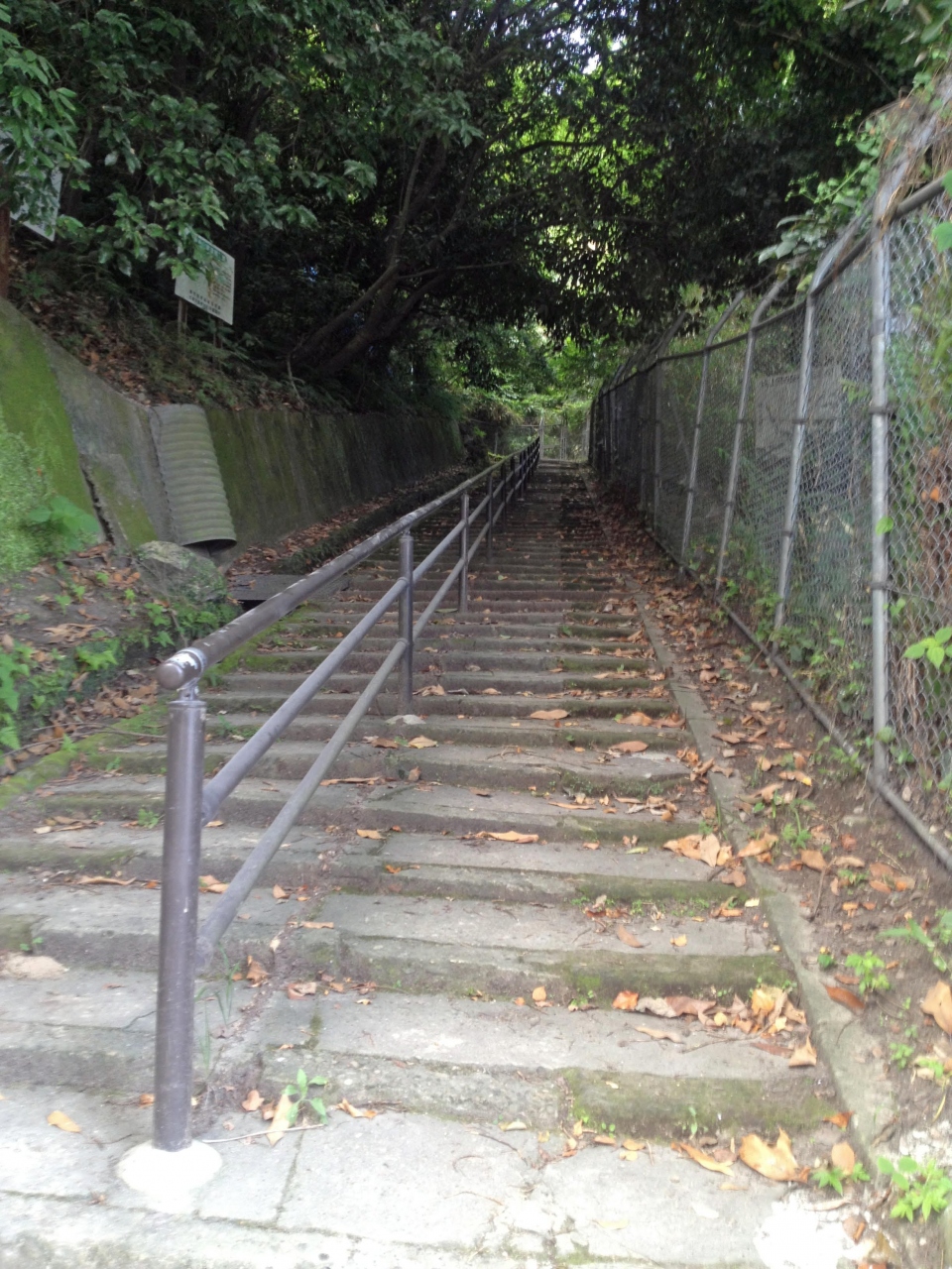 木々に囲まれた登山道は、階段が整備されている。途中、時折木々の切れ間から、照國神社や鹿児島市内の景色、さらには桜島の景観を楽しむこともできる。この登山道は、展望台と観光ホテルの間にある駐車場につくことになるので、展望台へも観光ホテルへも最短コースといえる。