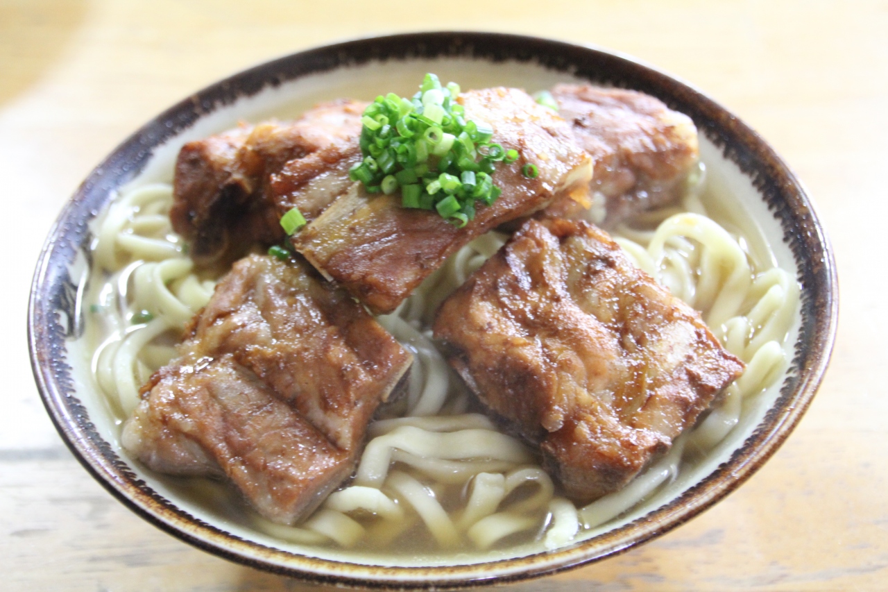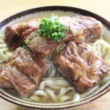 おだしも具もしっかり味がついていて、太麺と良く合います。コーレーグースを少したらすと、さわやかな辛さでまた食が進む~!