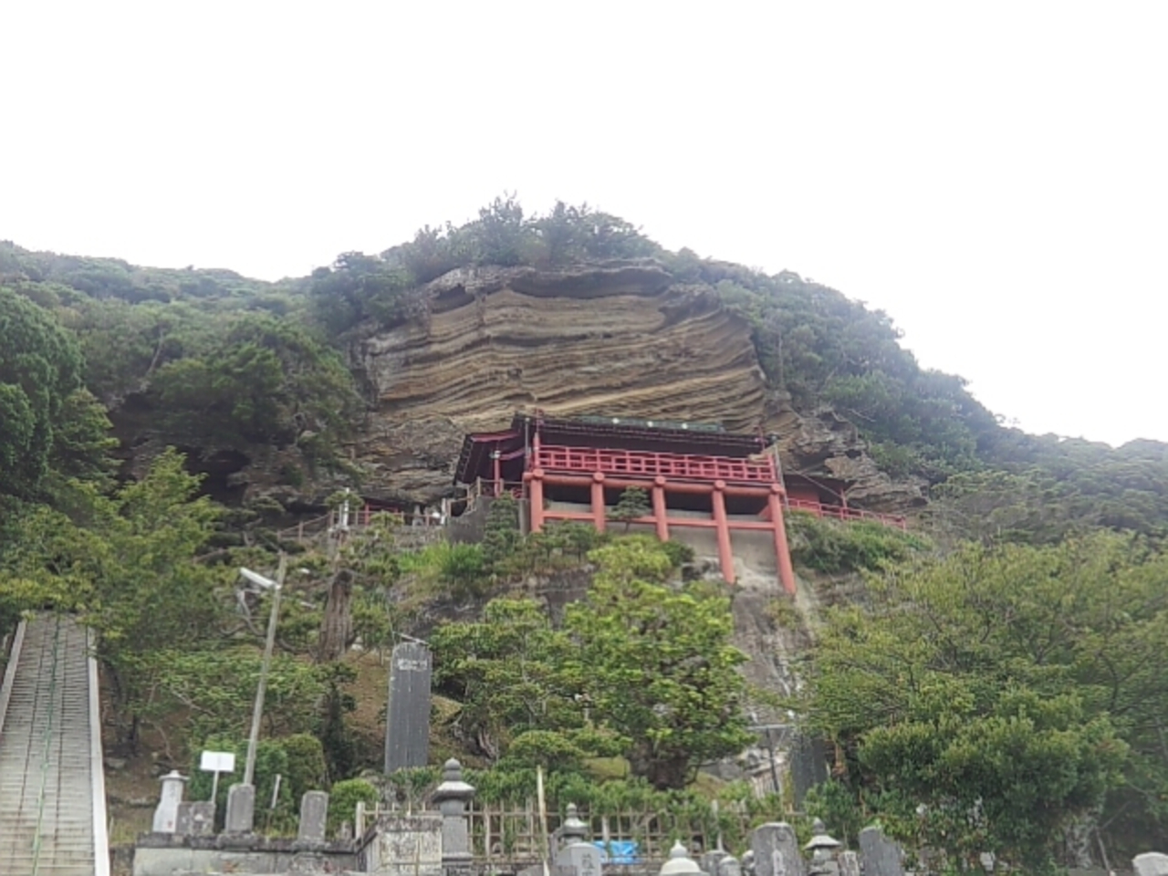 館山の隣駅の那古船形にある断崖絶壁に朱塗りの観音堂があります。車で通ってみてもつい二度見してしまうインパクトです。観音堂には磨崖仏として十一面観世音菩薩が刻まれ崖の観音と呼ばれるそうです。学生時代から大好きでよく来るスポットです。