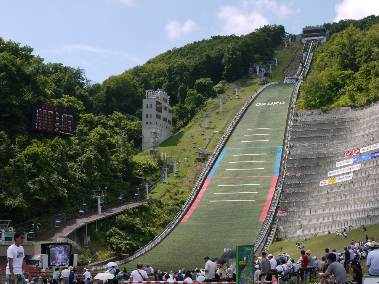 ジャンプ競技のある時は競技終了までリフトで登ることはできませんが、間近で競技を観戦することもできます。