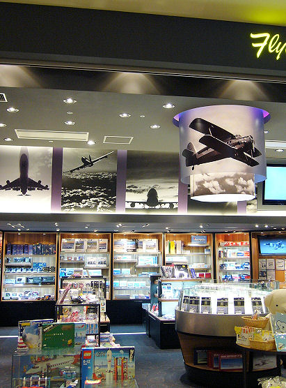 店の奥には、航空機のダイナミックな写真パネルがいくつも飾られており、一見するとマニア専門の航空機グッズの店なのかな?と思ってしまうのですが・・・よく見ると、子供向けのおもちゃなども置いていました。