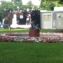 鹿、ふくろう、うさぎ、からすのブロンズ像です。