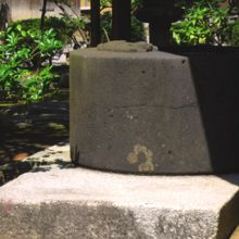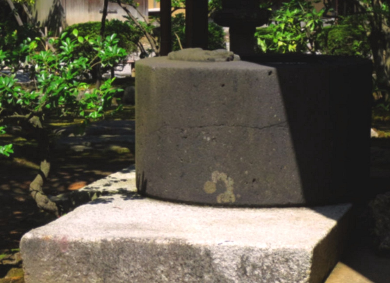 夕顔亭露地にある立ち蹲踞の手水鉢で見事に景観にマイッチングしています。自らの琴の音を最も理解した友人の死を嘆き、一生、琴を奏でないことを誓った名手 ・伯牙の姿が浮き彫りにされている手水鉢なんだそうです。高さ 45cm、直径85cmと大きいもので、5代藩主に招かれた京都の名金工・後藤程乗 の作とされているそうです。