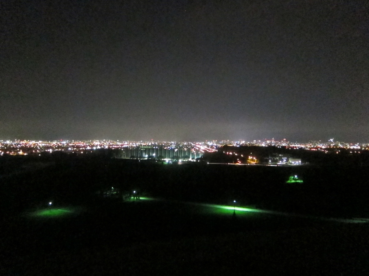 海の噴水のライトアップを見に行きました。こんもりと円形に噴射するフォッグ、リズムを打ってうねる波しぶき、25mもの高さにまで吹き上がる水の柱、いずれもが幻想的な光に照らされてロマンチックな夏の夜のひとときを過ごすことができました。ただし、蚊が多いです…。観賞には虫除けグッズが必須です。また、行った時は無風の日でしたが、風がある日などは風上側に立つなど、見る場所を考えないといけないかもしれません。平日でも結構見に来ている人がいるので、早めの到着がおススメです。噴水のライトアップは、6~8月は19:15~19:55です。40分間ですが、つかの間の幻想のひとときを過ごすことができました。終了後、ガラスのピラミッドに行きました。ギャラリーは閉まっていましたが、21時まで屋上を開放しています。札幌市内の夜景がきれいでした。その分、明るいため、星は街中にいるのと同様、数多くは見ることはできません。更に欲張って標高62mのモエレ山に登りました。頂上からはガラスのピラミッドよりも更に夜景が明るく、近くなった感じです。街灯などは無いですが、夜景の光で白い階段の通路がわずかに浮き上がって見えました。