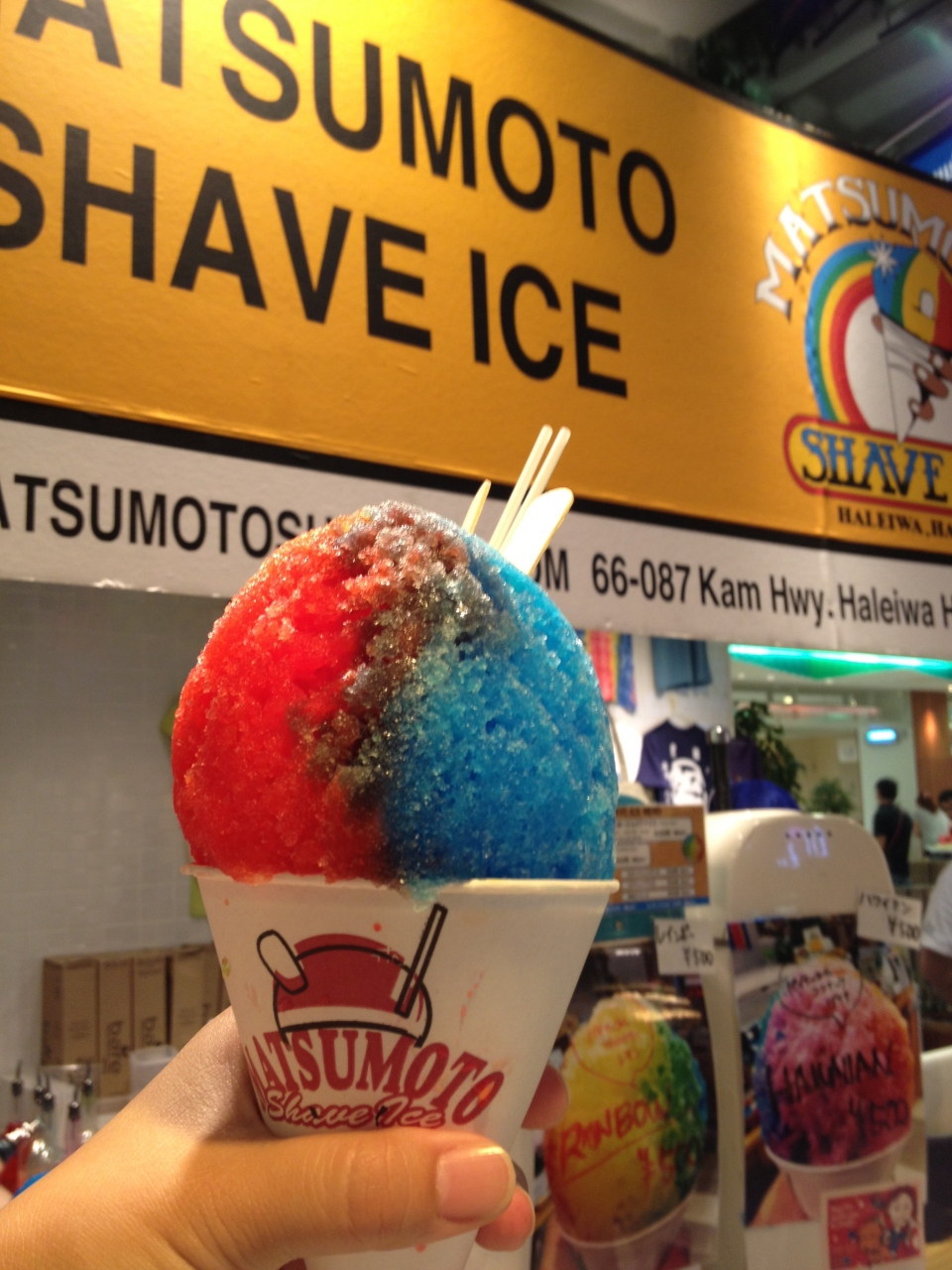 定番のレインボーをオーダー(¥500)。どこまで現地味になっているのか期待と興味が半々でしたが、氷はふわっふわ、シロップもたっぷりで○!現地に比べると割高ですが、日本で手軽に食べれるのは嬉しいです。クーラーの効いた館内で食べるよりも、いったん外に出て真夏の日差しの中で食べるほうが断然美味しかったです。次回は現地で味わいた~い。