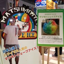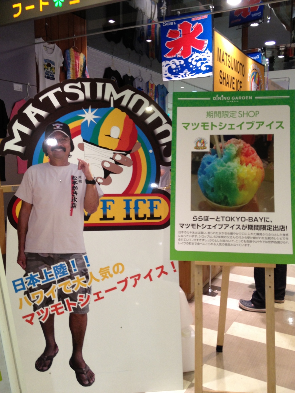 北館1Fのフードコートに期間限定でハワイのマツモトシェイブアイスが出店しています。ハワイに比べるとメニューは限られていますが、シェイブアイスの他にTシャツや小物類のオリジナルグッズの販売もありました。