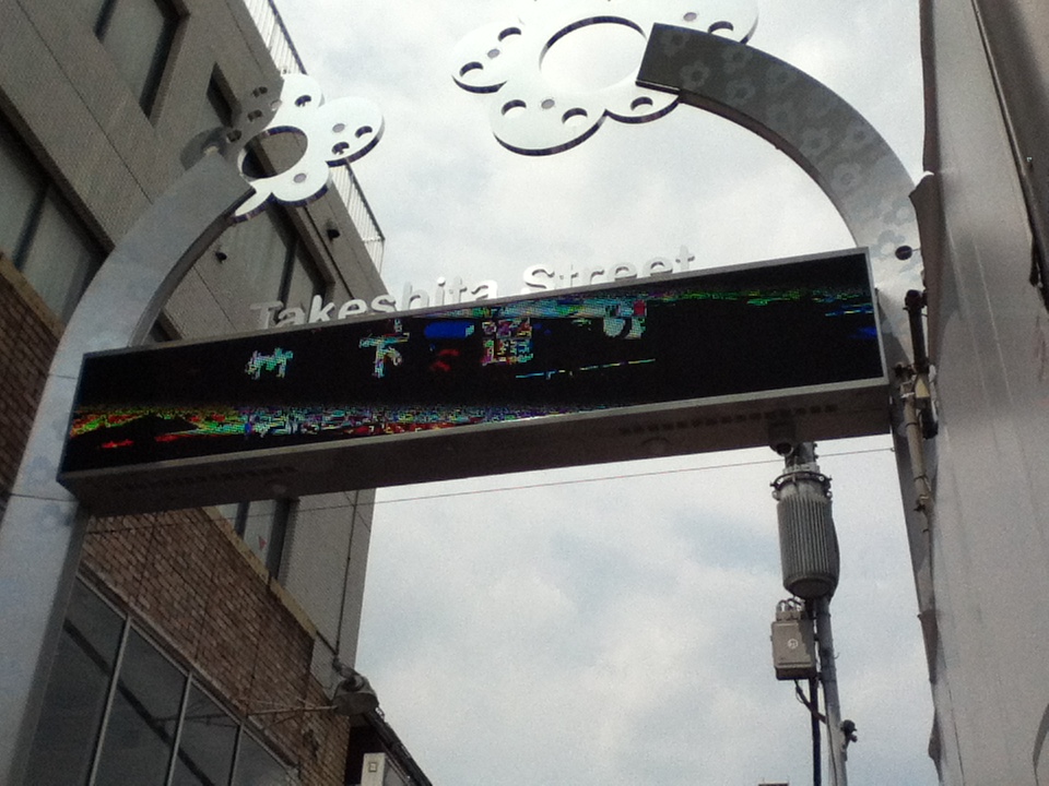 原宿駅の竹下口を降り通りを渡るとすぐだ。竹下口は明治神宮入口方面からは坂道でかなり下がった所にあるが、竹下通りのスタートはさらに下りからスタートする。とにかく人ごみでまっすぐ歩けない。通りが広くないので少し広めのお祭りの屋台の中の道を行く感じだ。原宿駅から近いところにあるマックで一休みする人、少し行ってクレープを食べる人。グッズも小物系が多くヤング層向けが多いせいか単価も安いものが中心だ。今も昔も勢いの衰えないこの通りは原宿の元気の源だ。写真は明治通り側から見た竹下通りの端。