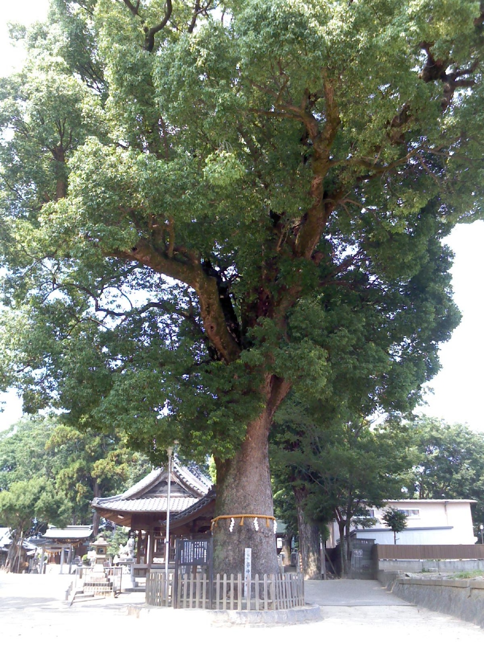 境内には他にも子守稲荷や針塚などもありますが、ひときわ目を引くのが境内の天然記念物のクスで、樹高25メートルの姿はフレームに収まりきれません。