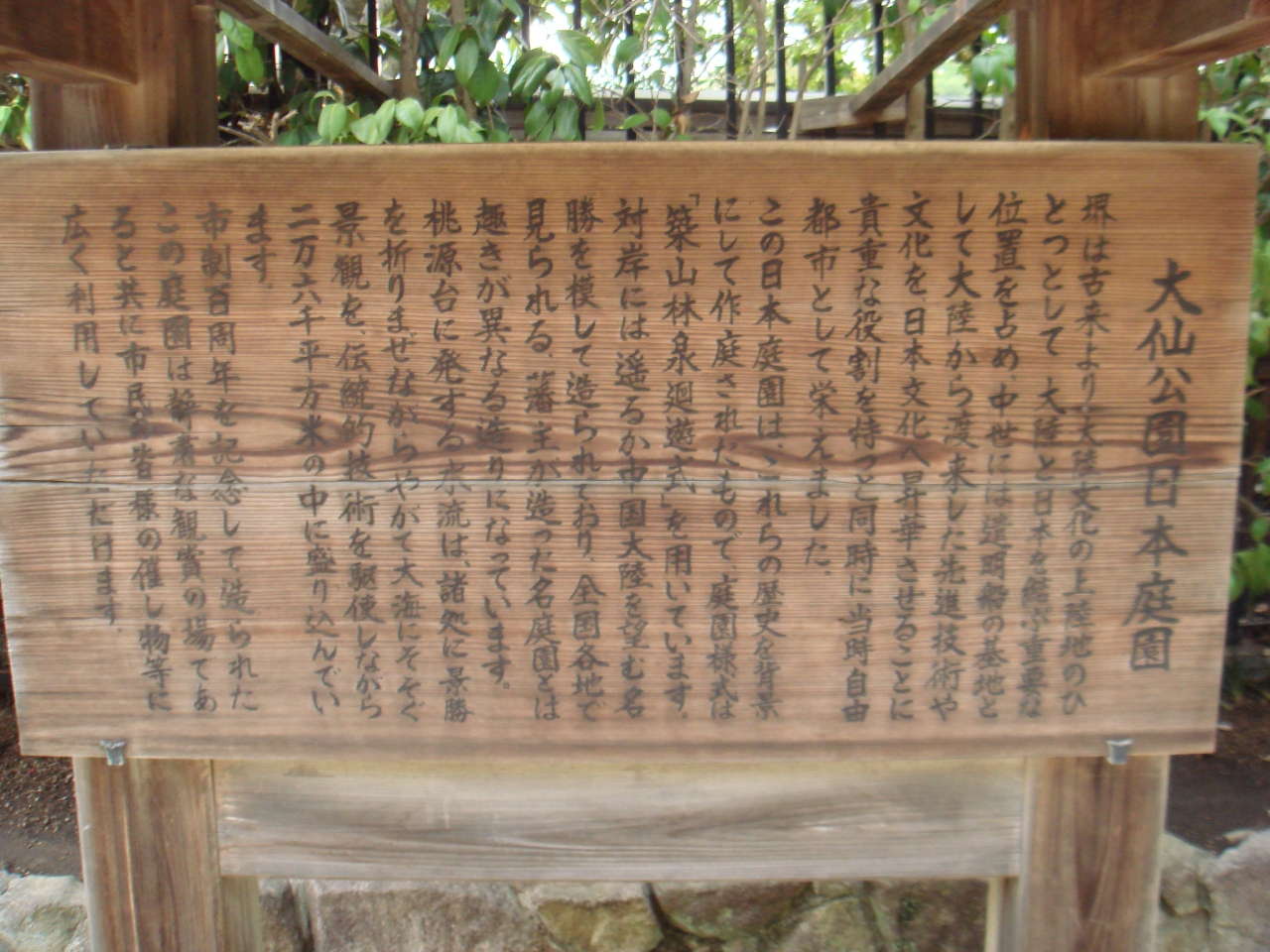 堺市博物館、伸庵と黄梅庵という2つの茶室、日本庭園、堺大空襲の鎮魂の為建設された平和塔など、所謂普通の公園よりは見所はある。