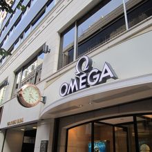 お店の入口のOMEGAの大きな文字と時計が目印です。