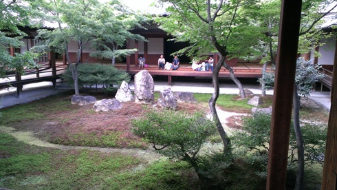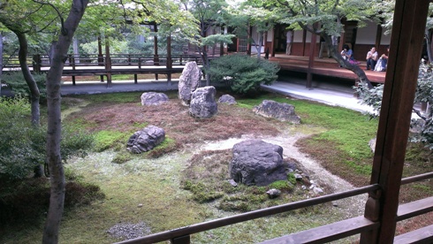 六波羅蜜寺のほど近くにあります。禅寺なので石庭があるがここの石庭は少し変わっている。潮音庭という石とこけ(なのかな?)のお庭があって、四方を回廊が取り囲んでいます。歩いてぐるっと回ることができるが360度どこから見ても美しくすきがない。生け花や舞台芸術などでもこのようなどの角度から見てもよい四方正面という考え方に基づいて作られている。さらにここには国宝の屏風絵、風神雷神図もあるし、平成になって描かれた天井画もあり、本当に見応えたっぷりすぎるお寺である。しかも写真撮影はご自由にどうぞという・・・・・太っ腹である。満足度150%。