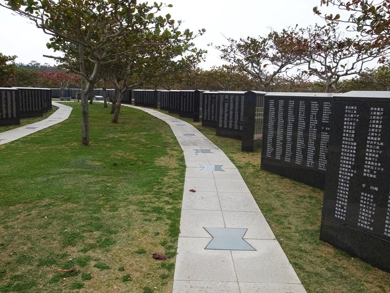 沖縄戦で亡くなった殆ど全ての人々の名が刻まれているという石壁の列。悲しみ、怒り、無常観、人によってその受けとめ方は違うのでしょうが、私はこれほどの犠牲を出しても人間は戦争を忘れて行くのだなあ、と昨今の日本の状況を思いながら歩きました。