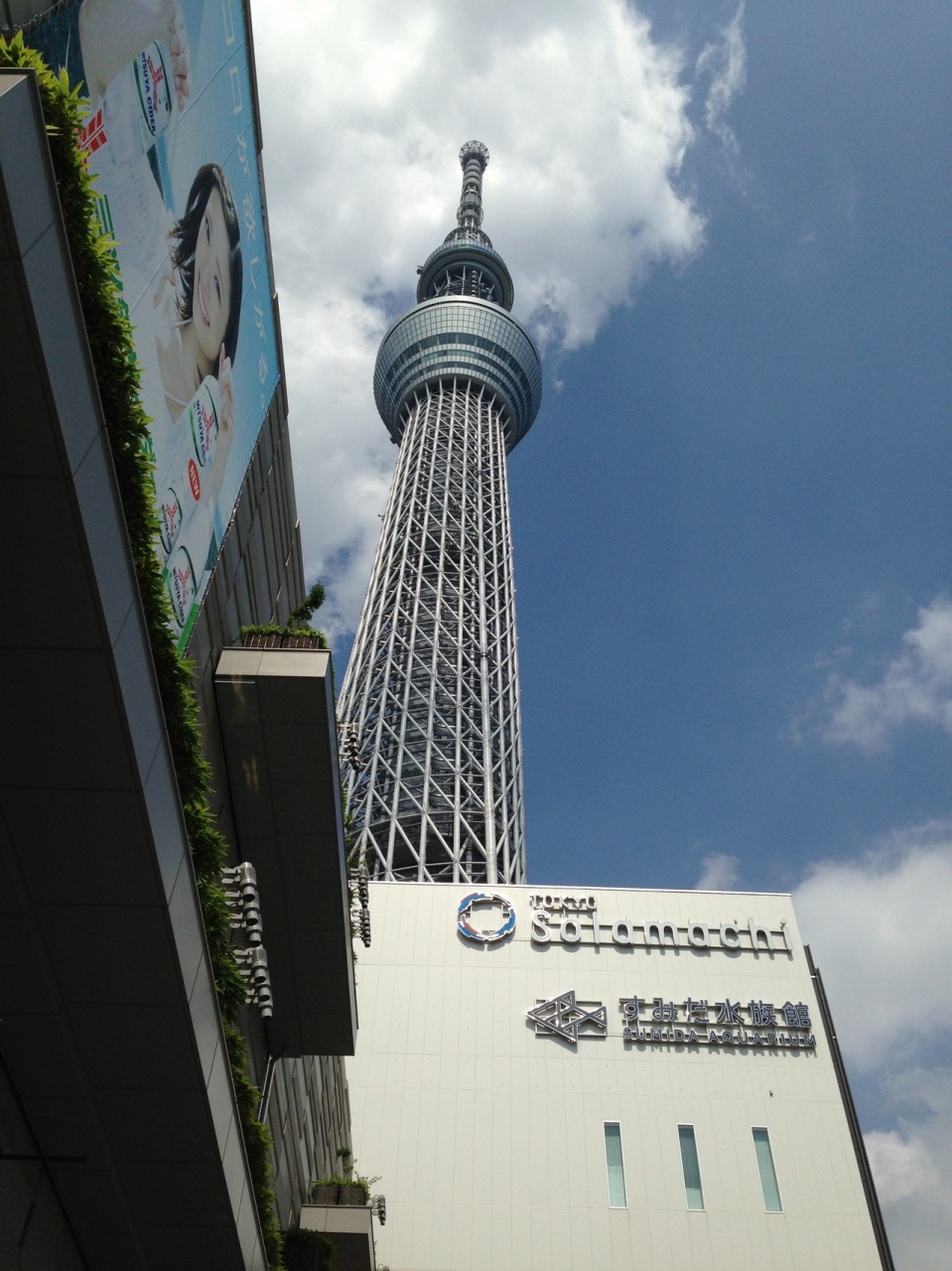 一度は行ってみようと上京した際に行って見ました。一ヶ月前から土曜日の展望デッキは完売。人気あるなぁ。ソラマチも行ってみたいし、近くでスカイツリーを見てみたいので行ってみました。さっすがすごい迫力!近すぎると写真におさまりません。公式ショップは欲しいものが見つからなかったので何も買わず。結局スカイツリーでは休憩で入ったお店でビールを飲んだだけでした。