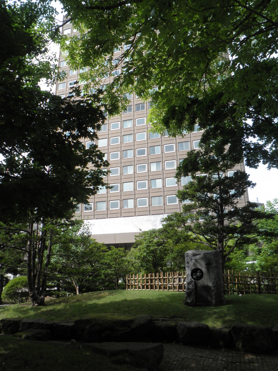 札幌市役所の前には、冬季オリンピックの聖火台や市役所庭園がありますが、中央創成小学校の跡の碑があります。 子供の顔が浮き彫りになった、夜見るとちょっとコワイ石碑です。 庭園のほうは、夜遅かったせいかのぼることはできませんでした。 ここらへんは、観光バスの待ち合わせ場所になってるらしく観光客が集まっていました。