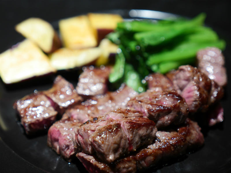 この日は鹿児島黒毛和牛120gを目の前の鉄板で焼いてくれました。
