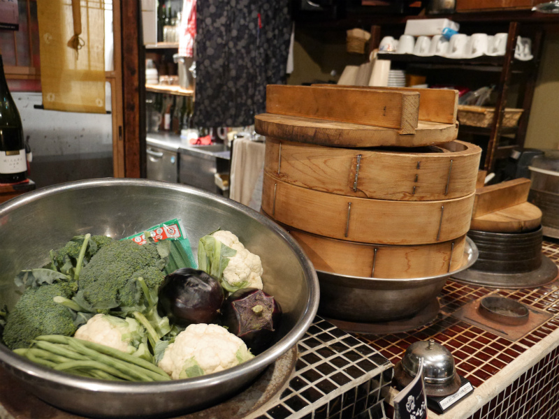 京都らしい町家を改装したお店で、店先には京野菜などが置かれています。