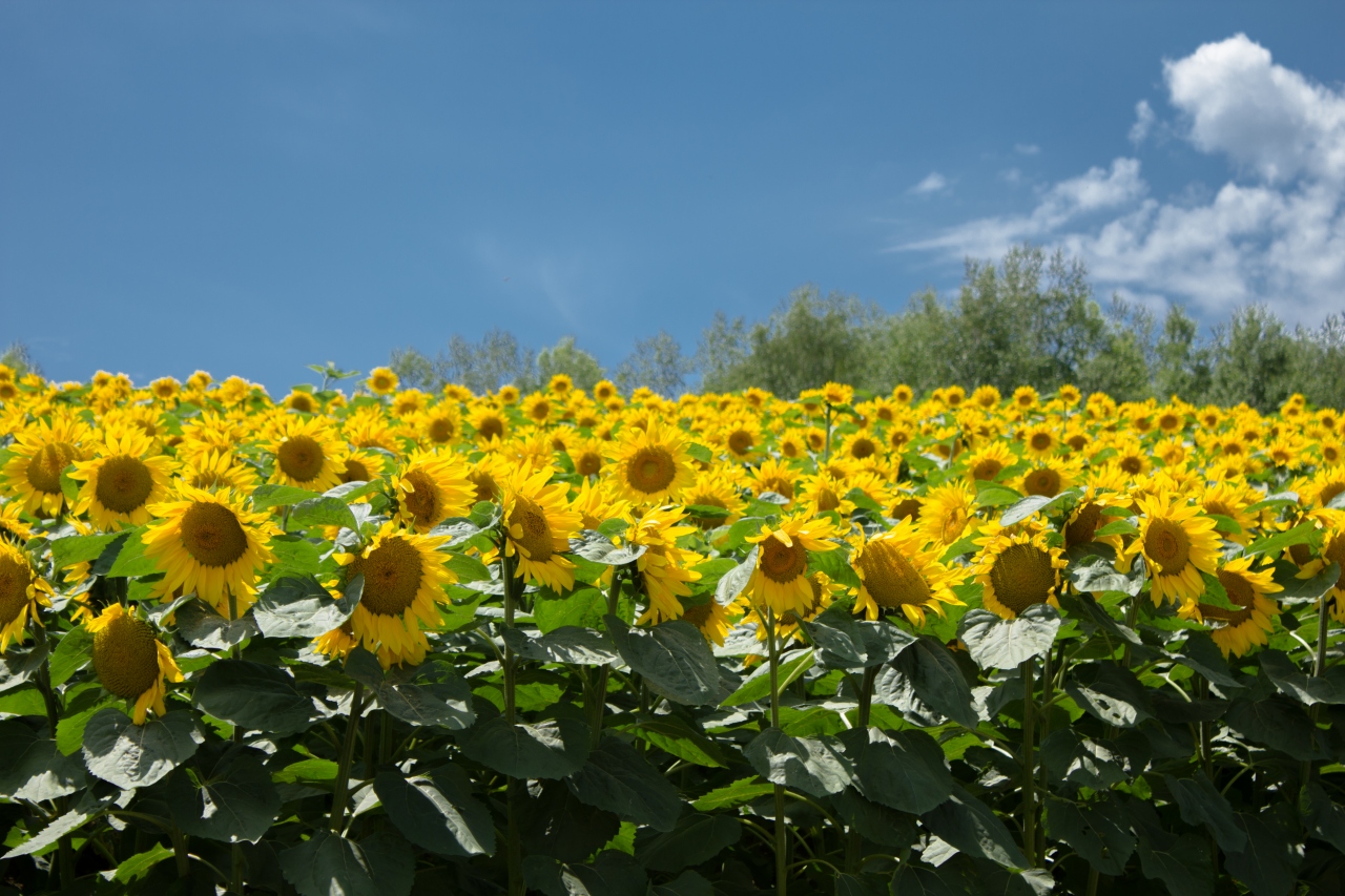 お昼すぎくらいに行ってみましたが、駐車場がかなり混雑していました。売店まえの通路を通らないと園内へ進めませんが、売店付近も大混雑していて東京の駅構内の様でした。園内は広いので、身動きが取れないということはありませんでしたが、混雑してはいました。海の日に行きましたが、ひまわりが満開できれいなコントラストでした。