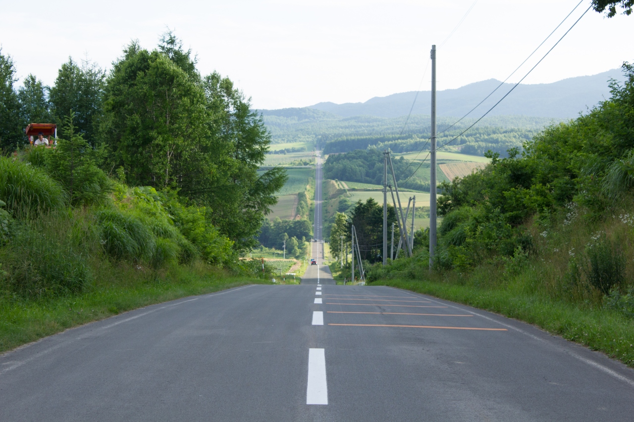 アップダウンの激しいジェットコースターの路。美瑛と富良野の中間くらいにあります。谷底の部分は十字路になっているので、一旦停止しなくてはいけませんので、ジェットコースター感はあまりありませんが、写真映えする景色が広がっています。