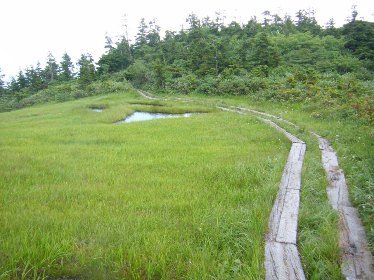 登り始めて3時間ほどで、登場する木道と、湿原の景色を見ると、つらかった全てを忘れさせてくれます。