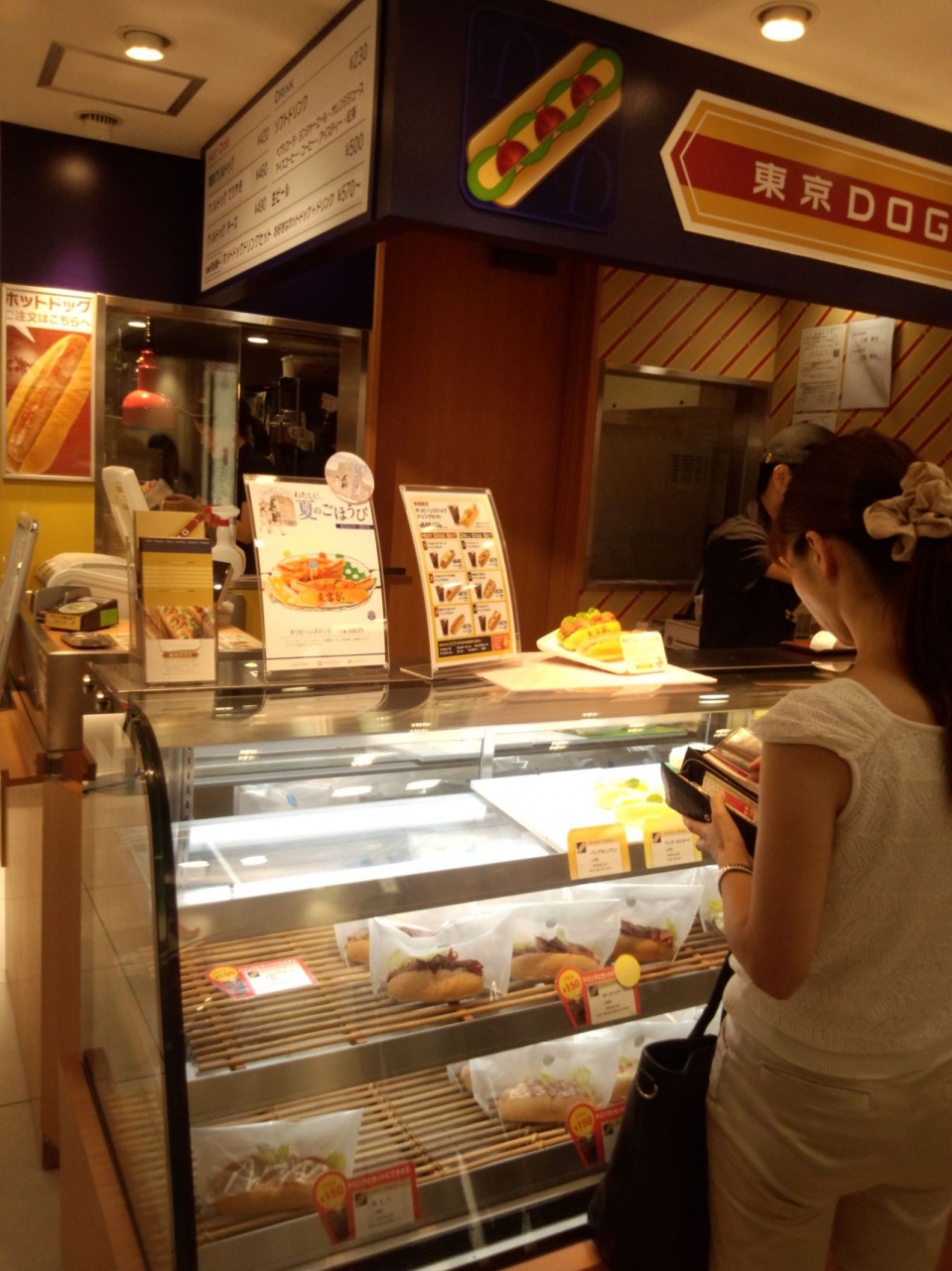 気軽に食べられるし、ドリンクのセットは喉が渇いている時などは、お腹も満たされて 生クリーム クリームチーズとフルーツが 挟まっているドッグなどは、目にも可愛いく 楽しくなります。観光客でも会社帰りでも お店の前が 無料のイートイン・スペースになっており、買ったお弁当やアイスクリームもスツールのような椅子と高さが膝位のテーブルの所で食べられます。 自由で助かります。
