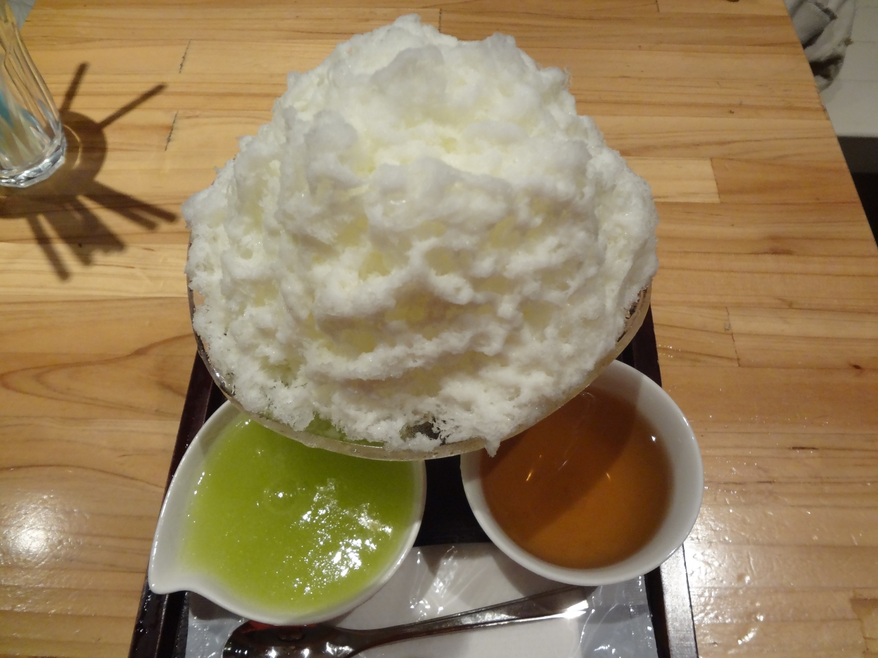 谷中の有名なかき氷のお店です。日光の天然氷を使用しているとかで、とにかく一度食べてみたいと思い行ってみました。訪れたのは週末の午後3時頃。行列は覚悟していたのですが、整理券制になっていて、割り振られた時間は、なんと20時10分。仕方なくその間を上野まで足を延ばして20時頃に再度訪問。そして念願のかき氷をいただきました。でも目当てのイチゴミルクは既に完売。仕方なく生メロンミルクを注文しました。かき氷はうわさ通りのふわふわで口当たりが良かったです。でもこれだけ待って食べる価値はあるのか、ちょっと疑問に思いました。また夜に食べるかき氷というのもなんか妙でしたね。とにかく時間に余裕を持って行くに限ります。