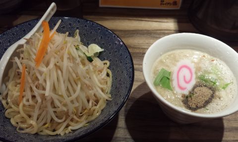 つけ麺にシャキシャキのモヤシが合いますね。野菜がたっぷりがさっぱり感を出して、濃厚なのにくどさを感じませんでした。