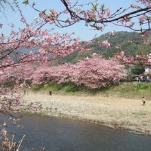 普通の桜(ソメイヨシノ)より1ケ月以上も早く咲く川津桜は、河津川に沿って数kmの並木道になっています。