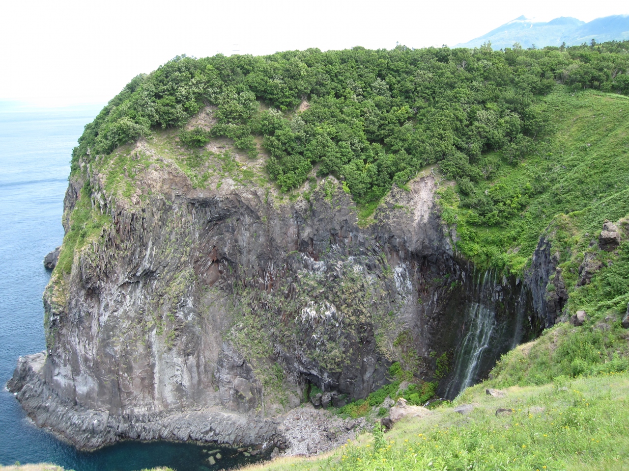 断崖絶壁の上部から水が流れ出てきて、滝となっています。乙女の涙とも呼ばれるそうですが、確かに豪快という滝ではなく、何かもの悲しい様を感じます。