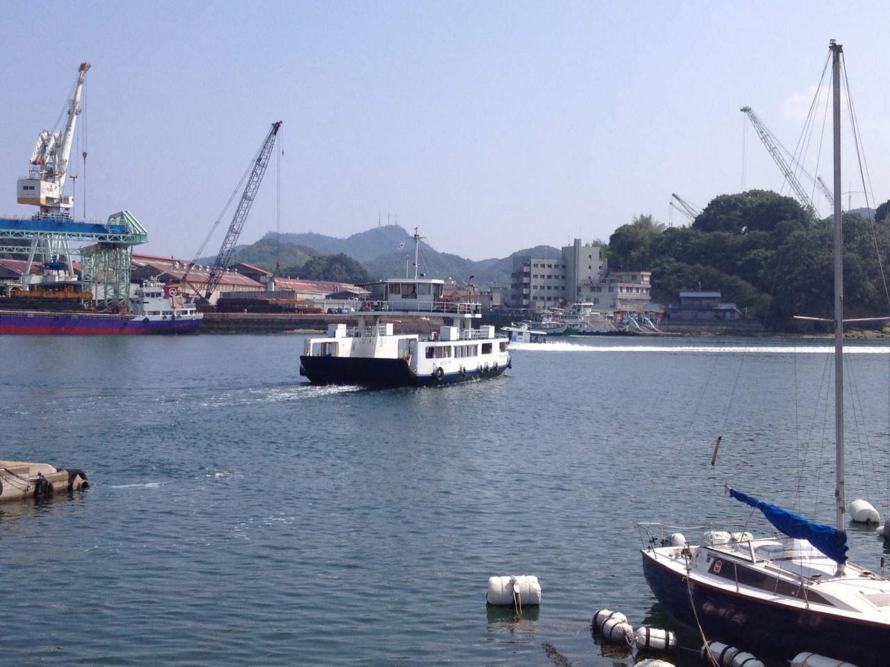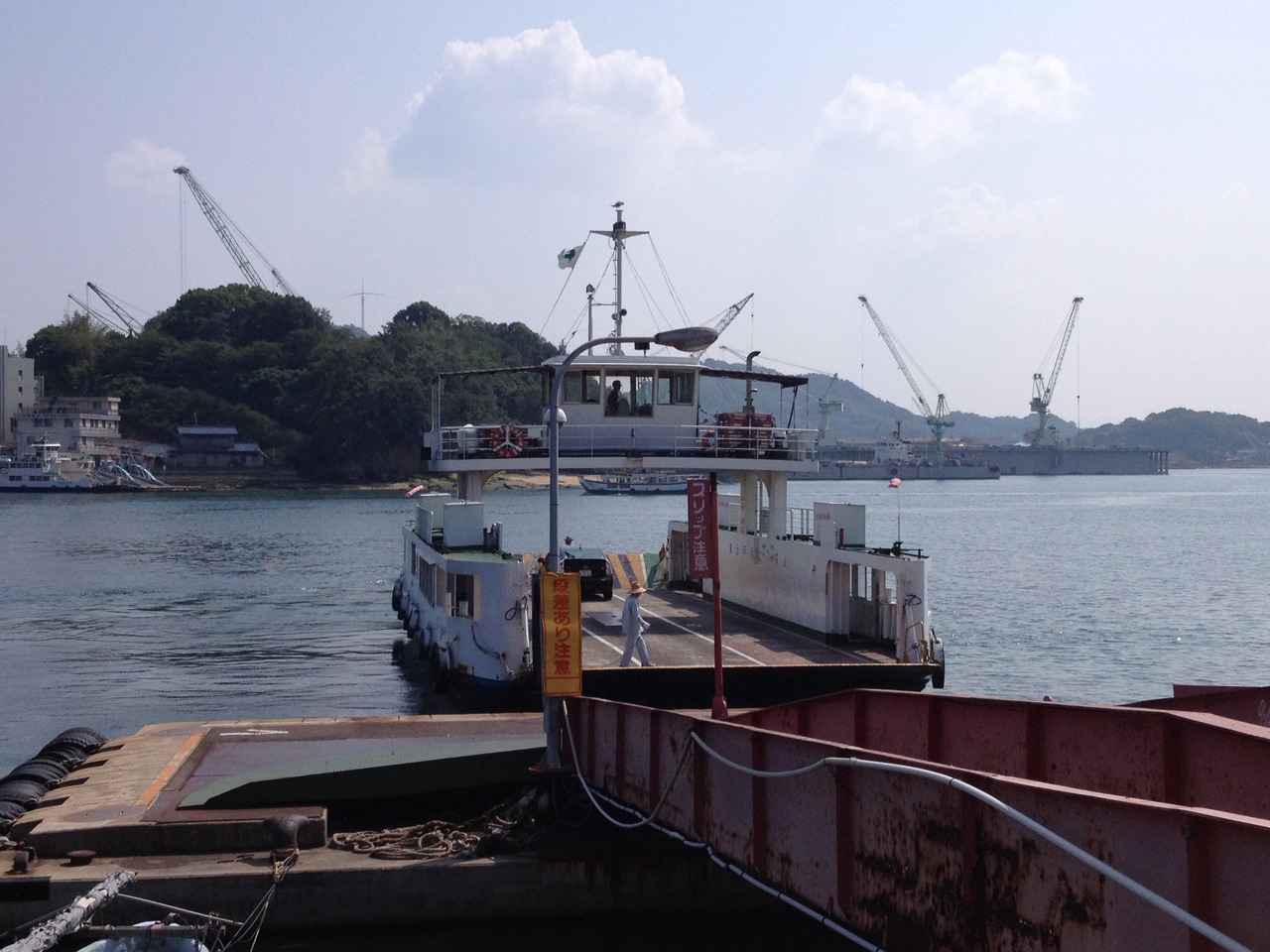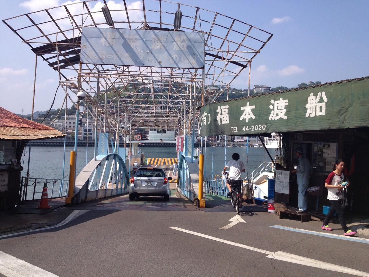尾道、向島間は何本かの渡船があるが、今回は福本渡船に乗った。JR尾道駅から自転車で3分でくらいのところに着く。人は60円、自転車も一緒だと70円と昭和な料金。車が一列に4台、自転車の学生と地元の人が一緒に乗った。乗っているのは3分くらい。特にダイヤはないようで、対岸に着いたらすぐに車や人を乗せてまた戻ってくるを繰り返している。尾道水道はれっきとした海なので、日本一短いフェリーということになるそうだ。尾道の情緒を出しているのと同時に、地元の人たちやサイクリストには、とても重要な交通手段になっているようだ。