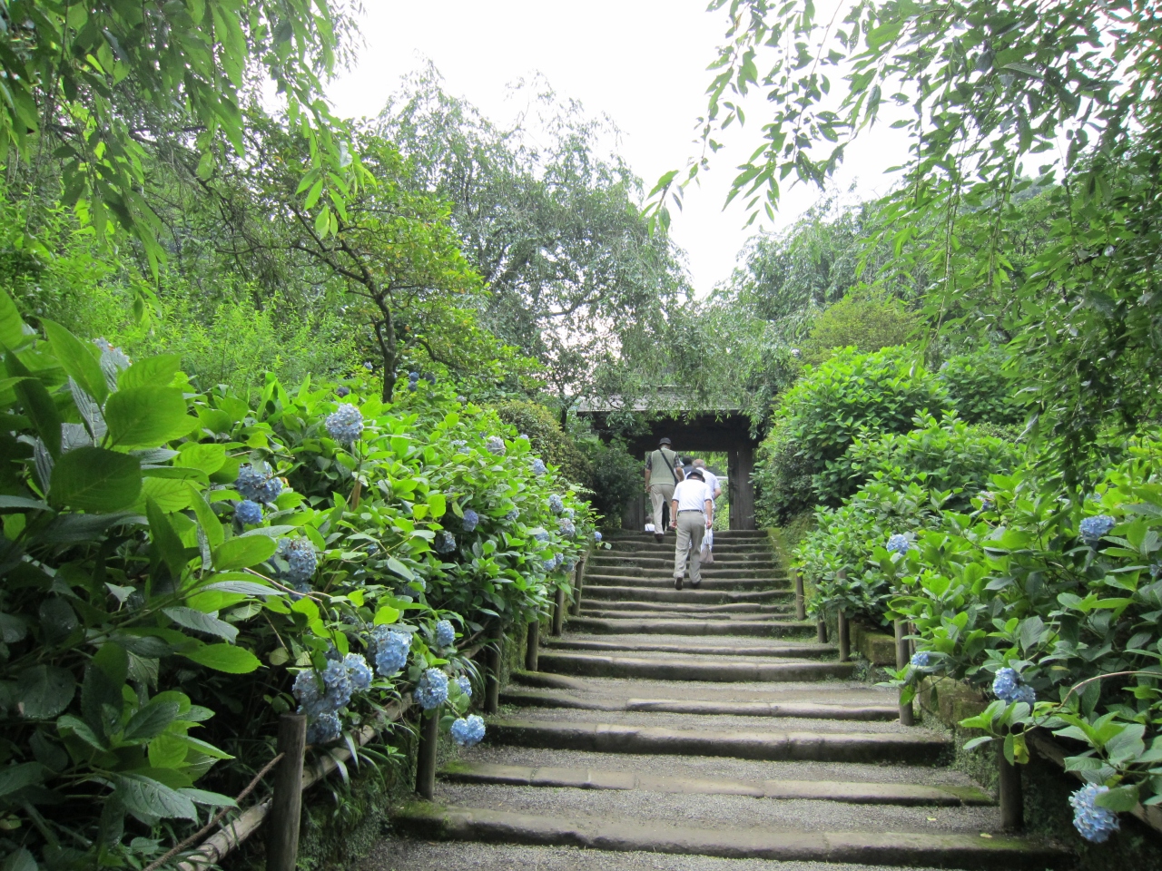 よく雑誌に載っている明月院ブルーのあじさいを写真で撮るために、他の観光客がどくのを待ったりしました。