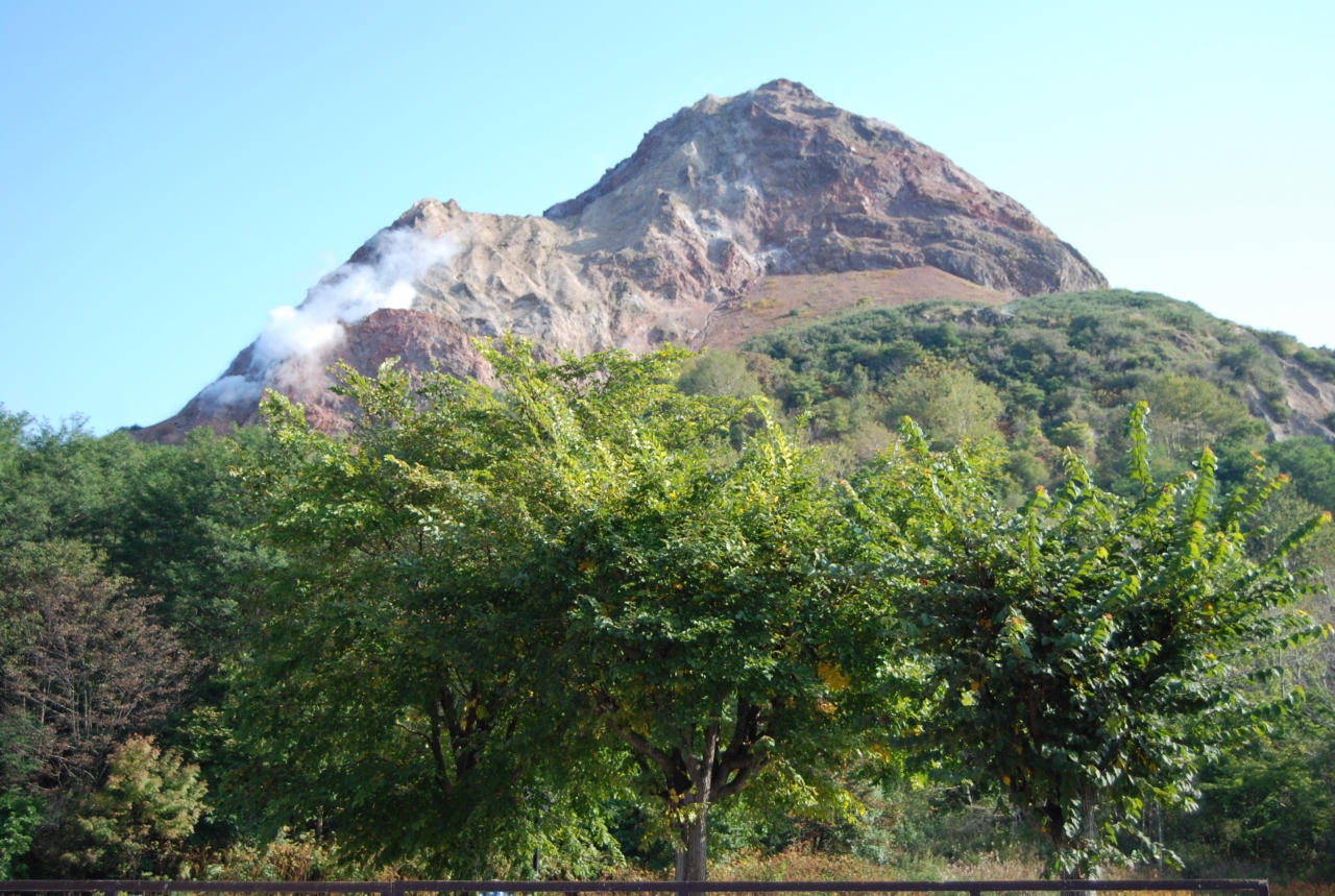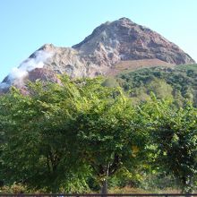年中火山活動が活発で、ところどころ、白い煙が発生しているのを