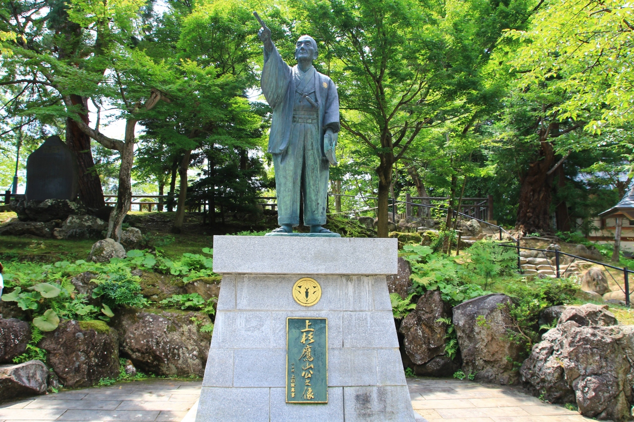米沢で一番人気がある歴史上の人物と言えば、上杉謙信・景勝、直江兼続などではなく、上杉鷹山でしょう。というくらい米沢市内には鷹山公の銅像があります。