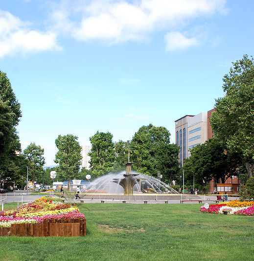 大通公園は、JR札幌駅から南へ600mほど。中心市街地を東西に貫く大規模な緑地帯です。
