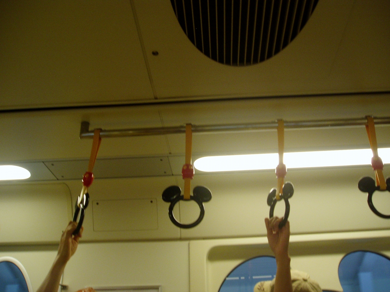 舞浜の駅から東京ディズニーシーは距離があるのでディズニーリゾートラインに乗って ディズニーシー・パーク駅まで行きました。6両編成で窓の形やつり革の輪の形までミッキーでとてもかわいかったです。パークは車で行くことが多いですが、電車でも楽しいです。