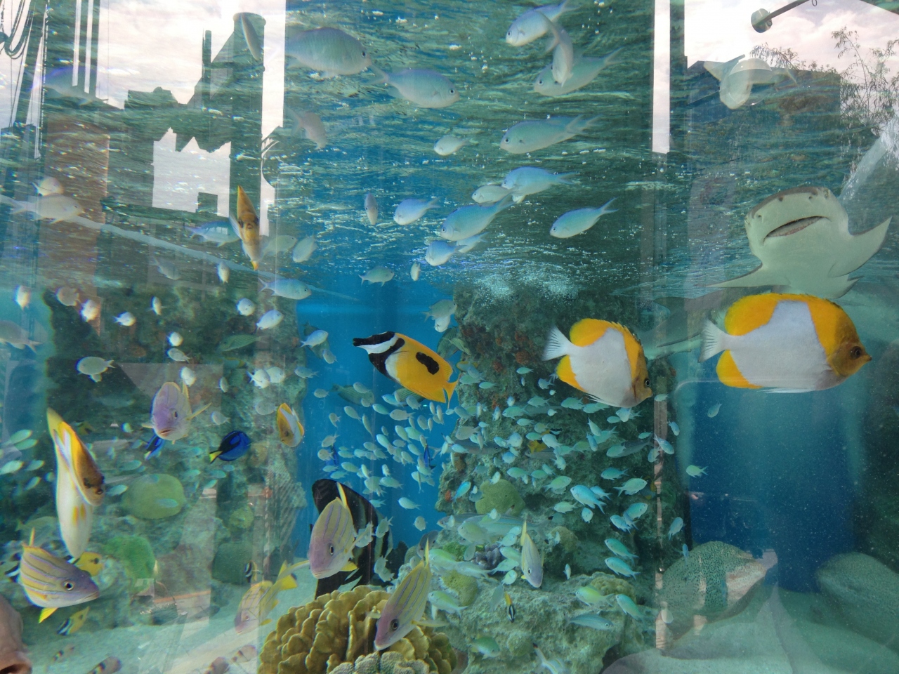 行われるイベントです。ビル入口には屋外大水槽があり約1200匹の魚達が泳いでいます。