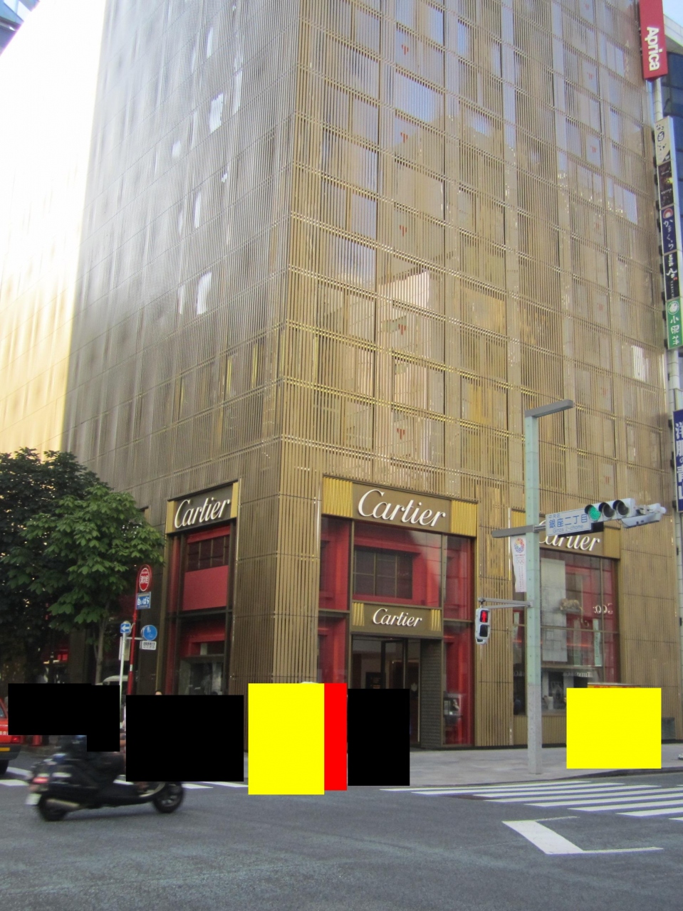 カルティエ (銀座2丁目ブティック)は銀座の中央通り沿いに銀座二丁目にある、フランスの宝飾・高級時計ブランドです。金色のストライブ模様のビルで、ものすごく目立ちます。覚えやすいと思います。