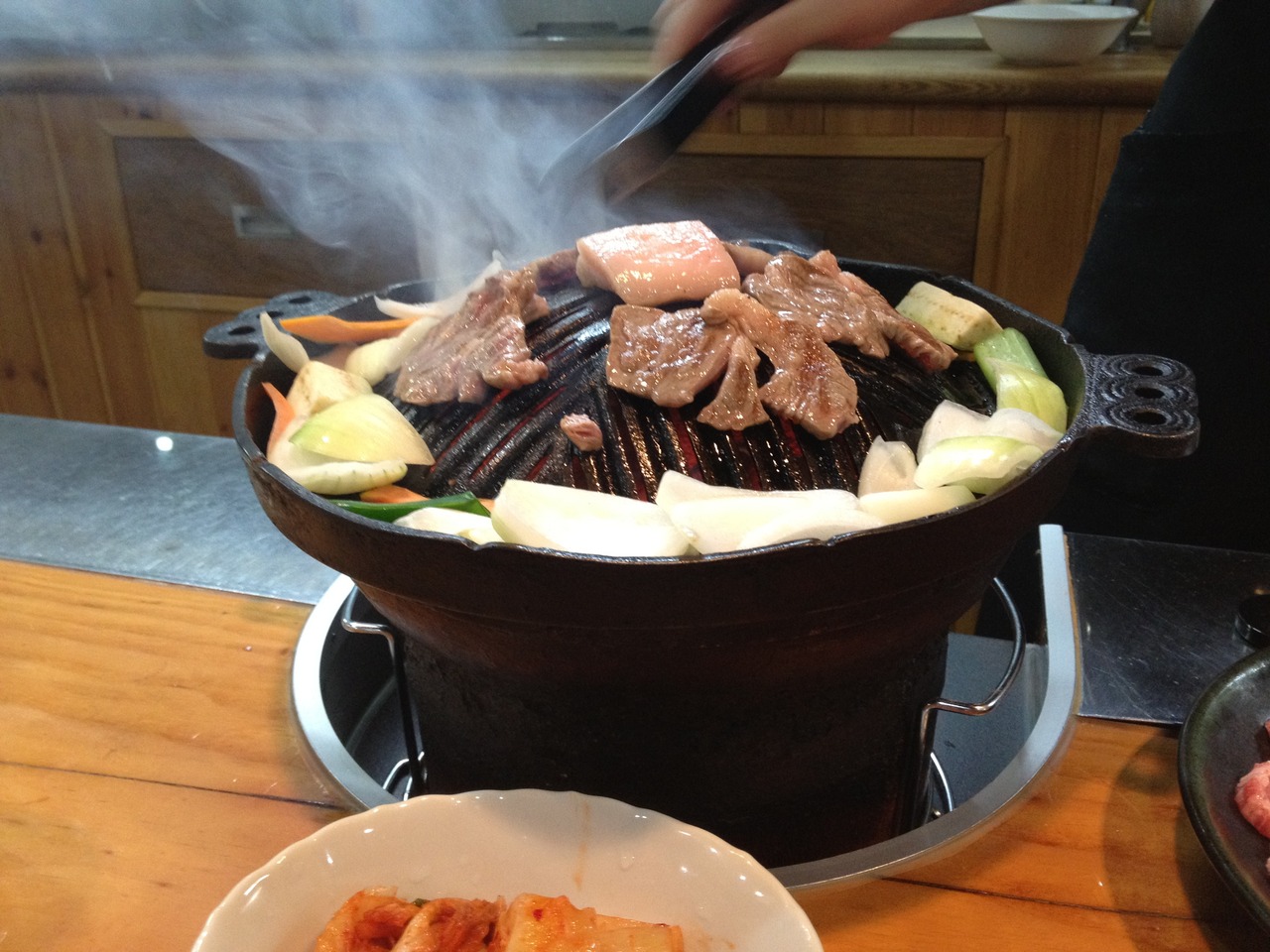 生ラムジンギスカンのお店です。穴あきジンギスカン鍋を七輪に載せて焼いて食べます。普通のジンギスカン鍋は穴が空いてないのですが、穴あきの方が美味しく焼けるようなきがします。