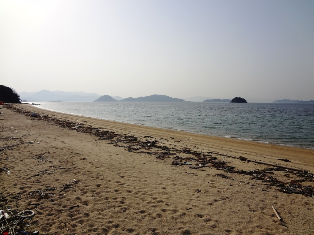 瀬戸内海に突き出すように東西に延びる周防大島の東寄りにあるビーチが逗子が浜です。大島大橋を渡り、大島北側の海岸沿いを走る国道437号をそのまま進めば30−40分で到着します。訪れたのは、まだ、ビーチの整備が進んでいない5月だったので、それほどきれいにも感じなかったけど、シーズンがくれば、きれいになるんでしょうねえ。ビーチの長さは約500メートルとたっぷりの長さ。キャンプ場や簡易宿泊施設もあるそうですが、見あたりませんでした。