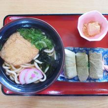 おうどんと自家製の柿の葉寿司のセットを頂きました。