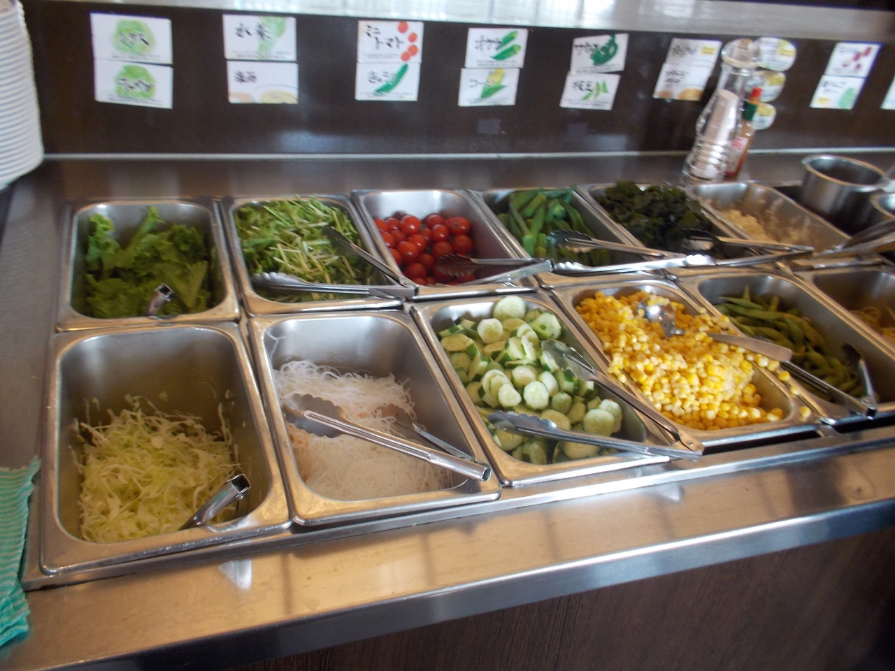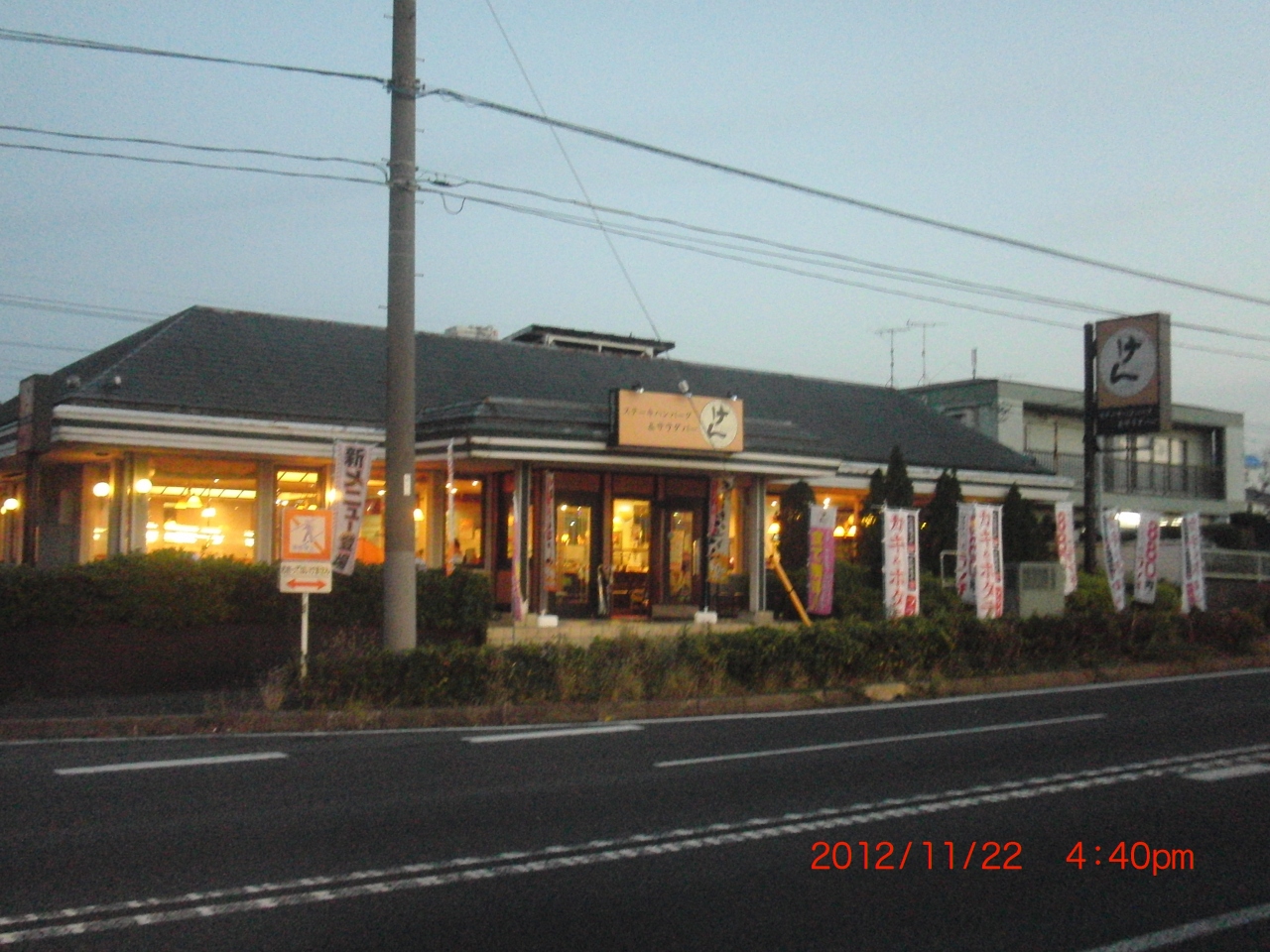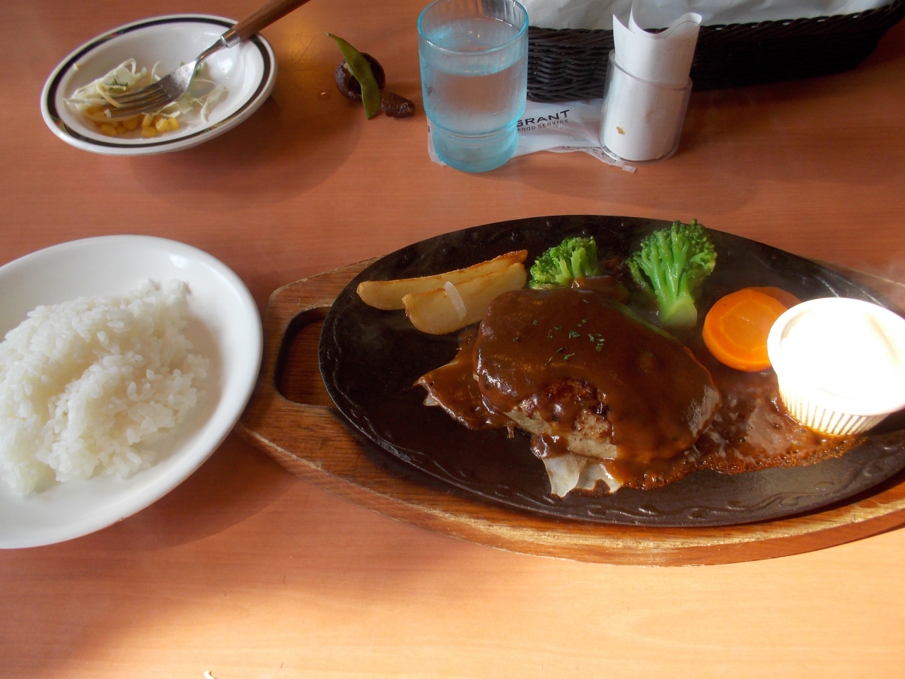 電車の駅からは遠いため、車がないと行けない場所にはありますが、国道6号線沿いで、新京成線の上本郷と松戸の間の鉄橋近くに位置している。 ハンバーグとステーキがメインの料理ですが、サラダバーが付いてくるので、キャベツ、ライチ、やパイナップルの他、スープやライスも食べ放題になります。